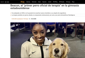 Beacon. El equipo olímpico de gimnasia de USA pone un perro oficial de terapia para sus atletas.