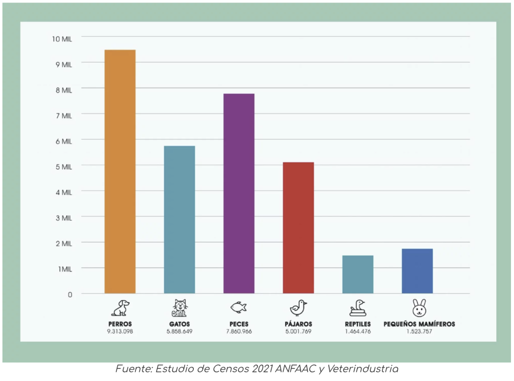 Según información recabada de ANFAAC (Asociación Nacional de Fabricantes de Alimentos para Animales de Compañía) y del INE (Instituto Nacional de Estadística) es España la cifra de perros en las viviendas supera a la de los niños menores de 14 años. Y la tendencia va en aumento porque se unen a esta lista gatos, peces, pájaros, reptiles y pequeños mamíferos.